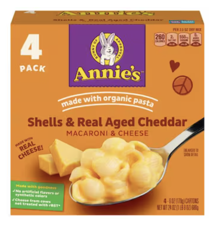 Annie's Macaroni & Cheese, Shells & Real Aged Cheddar 4 - 6 oz (170 g) cartons [24 oz (1 lb 8 oz) 680 g]
