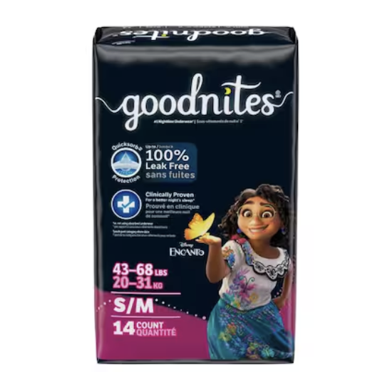 GoodNites Underwears, Nighttime, Girls, Disney Encanto, S/M, 43-68 lbs 14ct