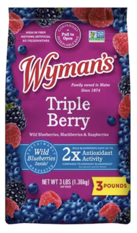 Wyman's Triple Berry Blend: Wild Blueberries, Blackberries and Raspberries, 3 lbs