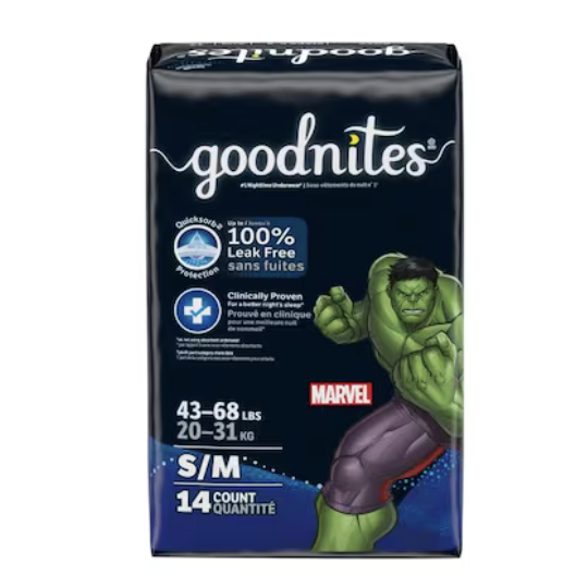 GoodNites Boys Marvel Nighttime S/M Underwear (43-68 lbs) 14ct