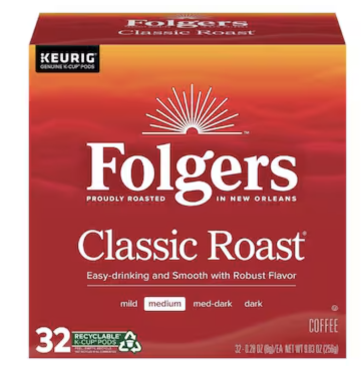 Folgers Classic Roast K Cup Keurig Coffee Pods Medium Roast 32 Ct