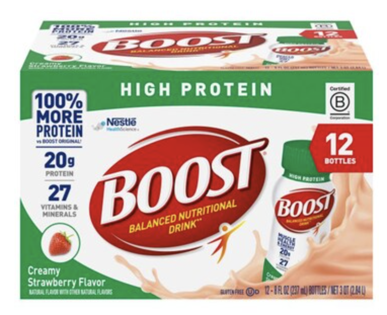 Boost Balanced Nutritional Drink, High Protein, Creamy Strawberry 12 - 8 fl oz (237 ml) bottles [3 qt (2.84 l)]