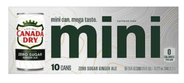 Canada Dry Ginger Ale, Zero Sugar, Mini 10 - 7.5 fl oz (221 ml) cans [75 fl oz (2.2 l)]