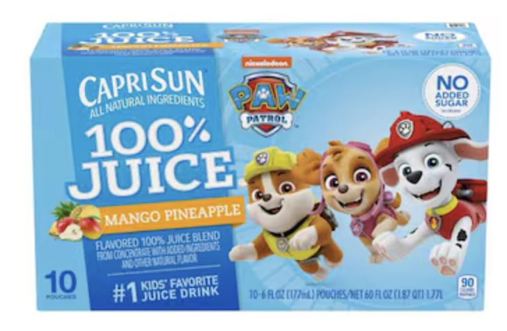 Capri Sun 100% Juice, Mango Pineapple, Paw Patrol 10 - 6 fl oz (177 ml) pouches [60 fl oz (1.87 qt)