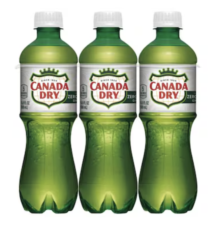 Canada Dry Ginger Ale, Zero Sugar, Caffeine Free 6 - 16.9 fl oz (500 ml) bottles